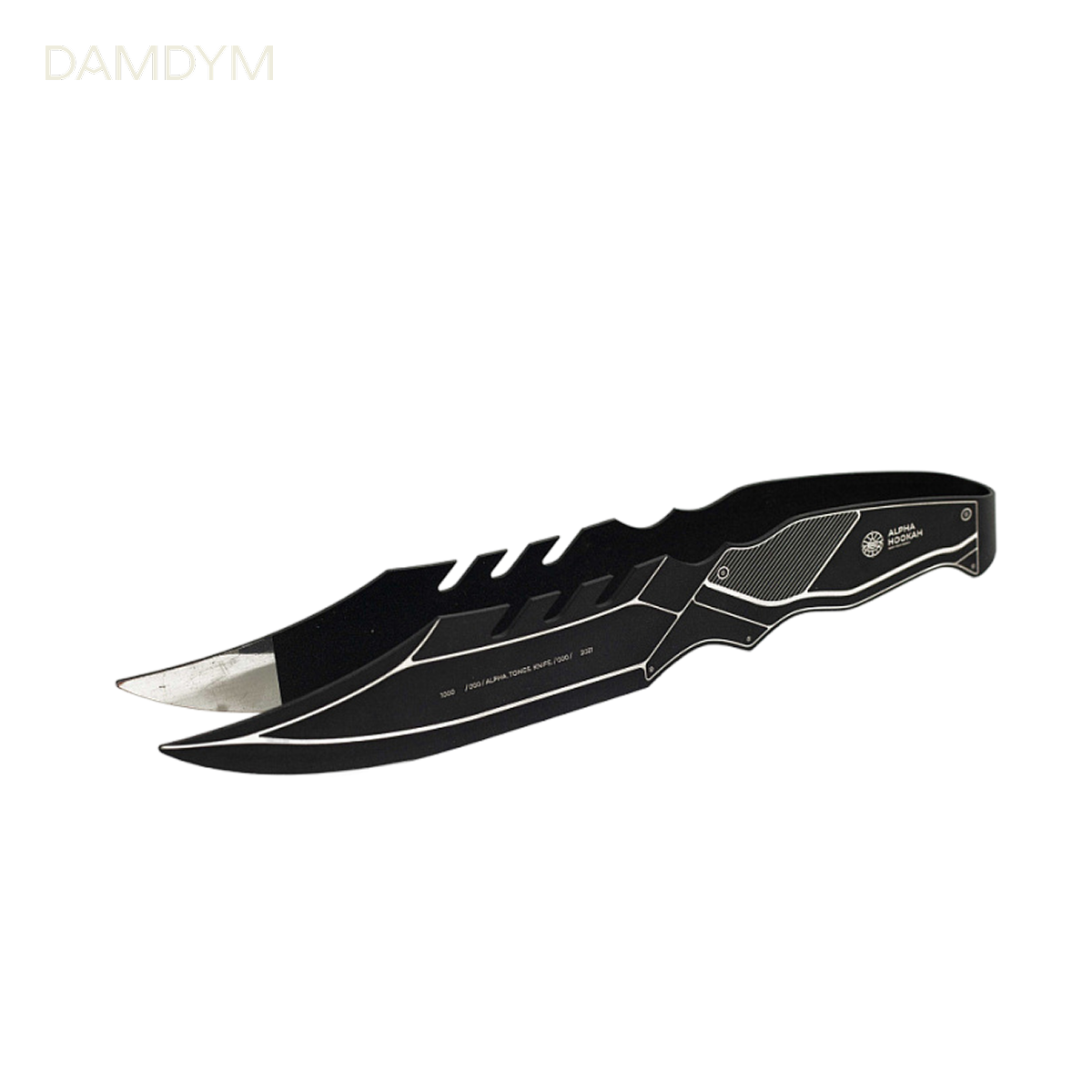 Щипцы Alpha Hookah Military (Knifes) Modern — это щипцы для кальяна в форме изогнутого тактического ножа для выживания. Они сделаны из нержавеющей стали и покрыты термостойкой чёрной краской.